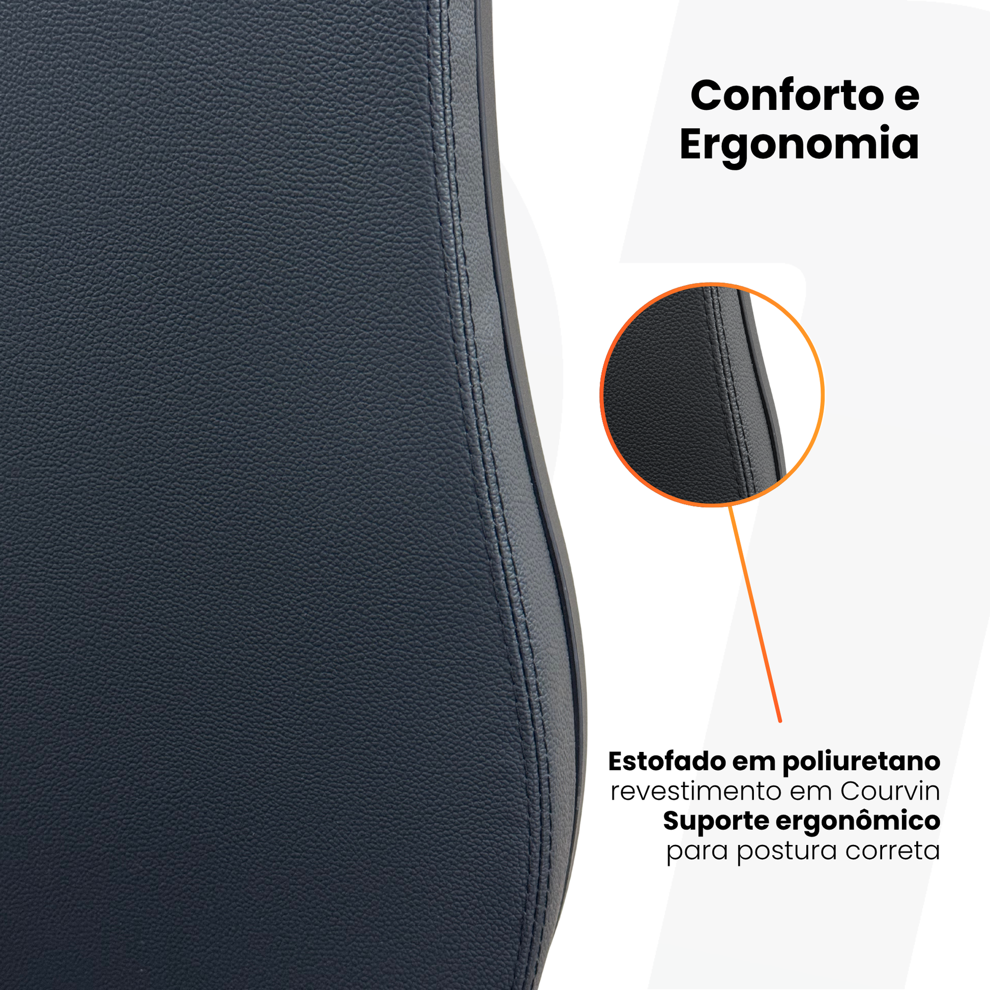 - • Conforto e Ergonomia Inigualáveis: Desfrute de treinos prolongados com o estofado em poliuretano e revestimento em Courvin, que oferecem conforto excepcional e suporte ergonômico. Mantenha a postura correta, minimize riscos de lesões e maximize a eficácia do seu treino.