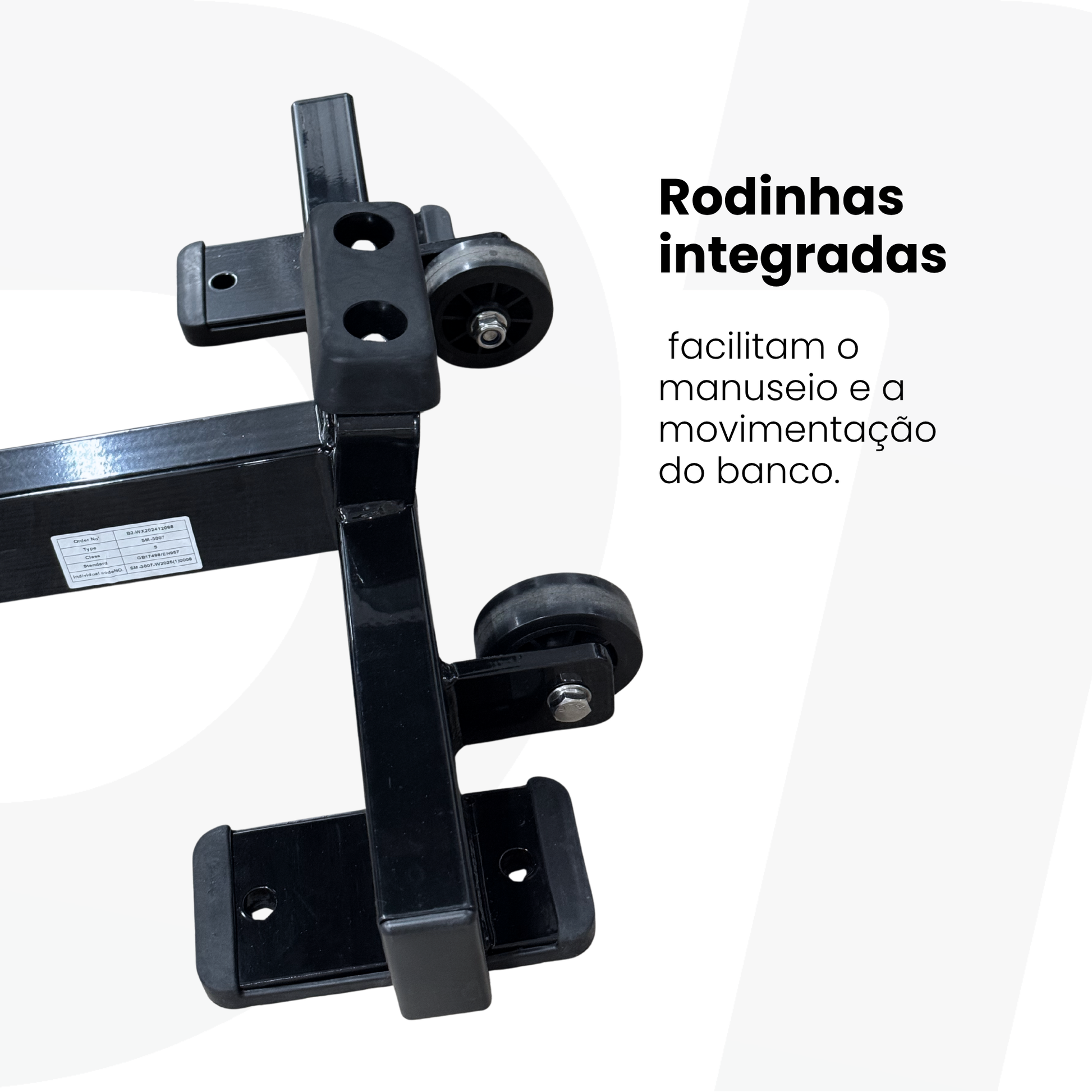 - Versatilidade de Exercícios: Suporte para supino inclinado, declinado, exercícios com halteres e diversos movimentos de musculação.