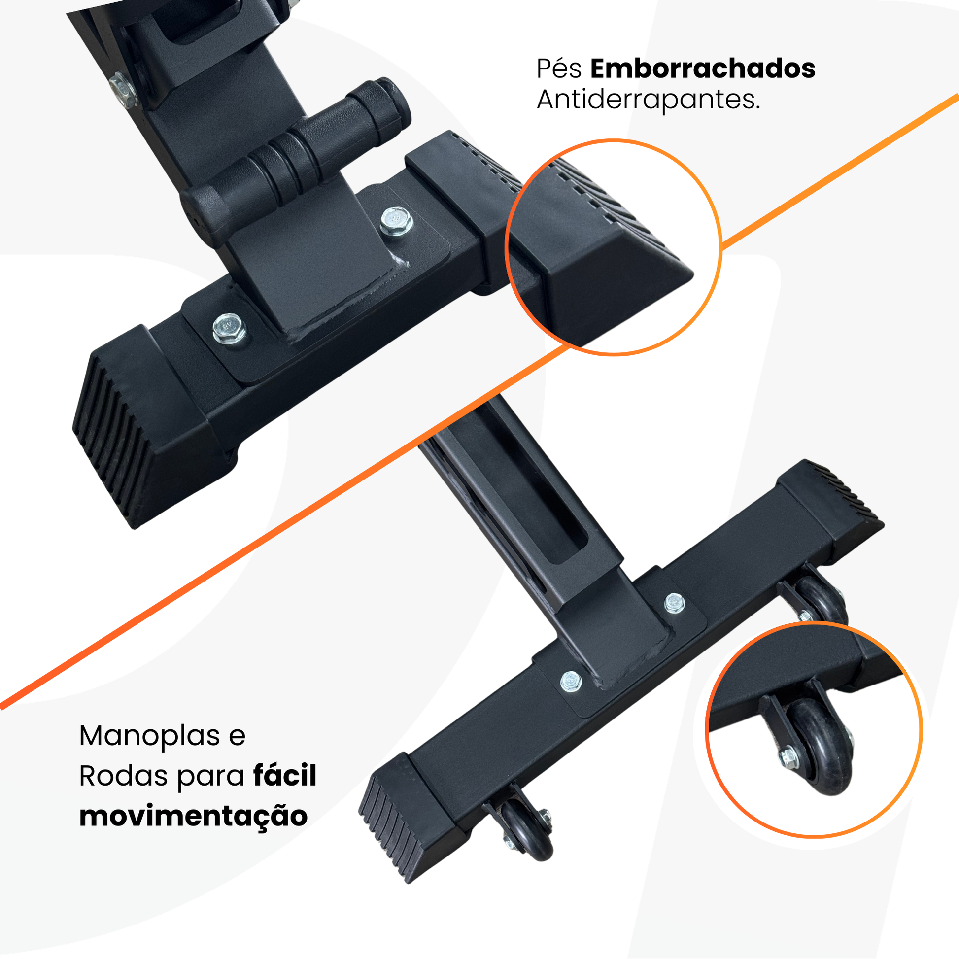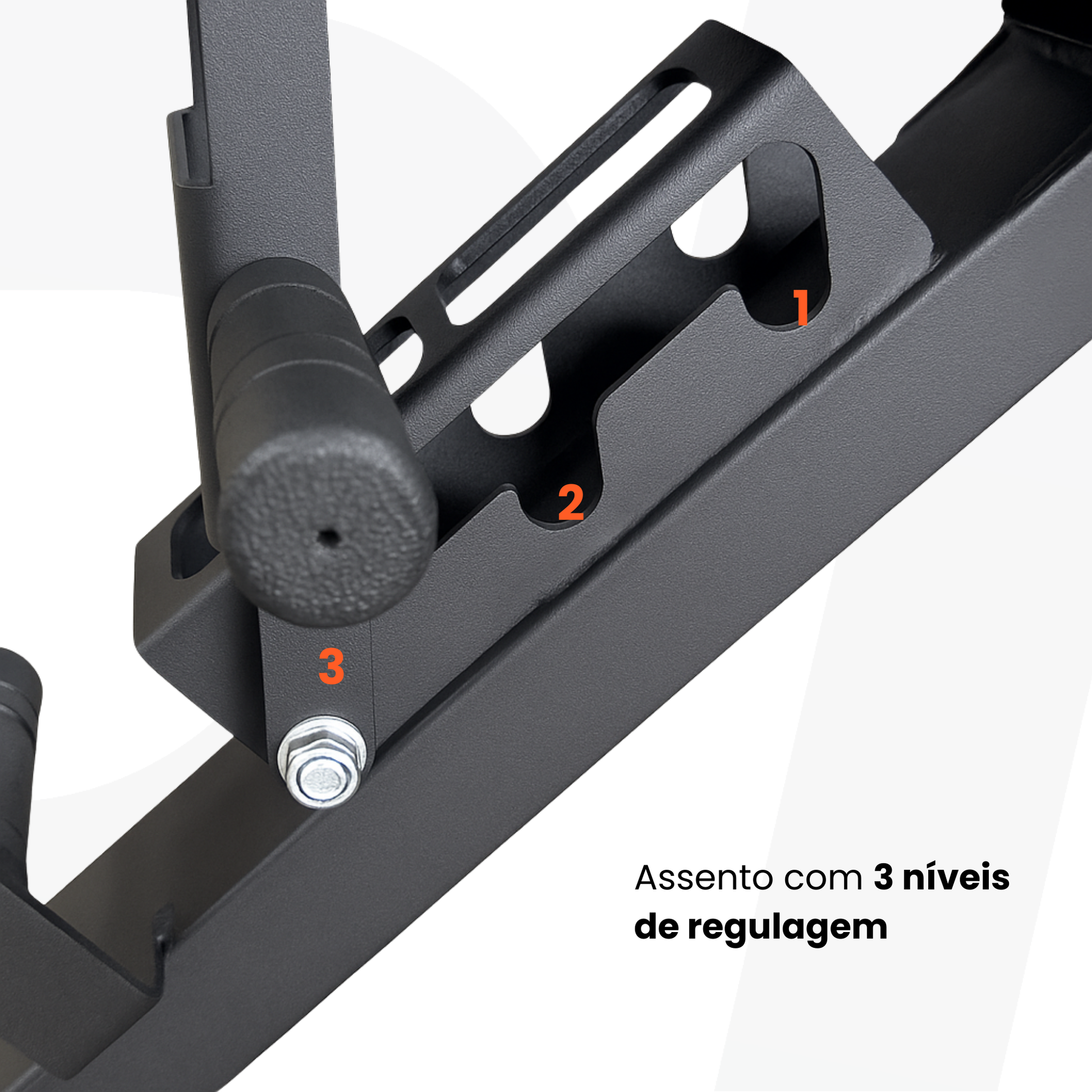- Segurança e conforto: assento e encosto ajustáveis que proporcionam treinos seguros e ergonômicos, prevenindo lesões.