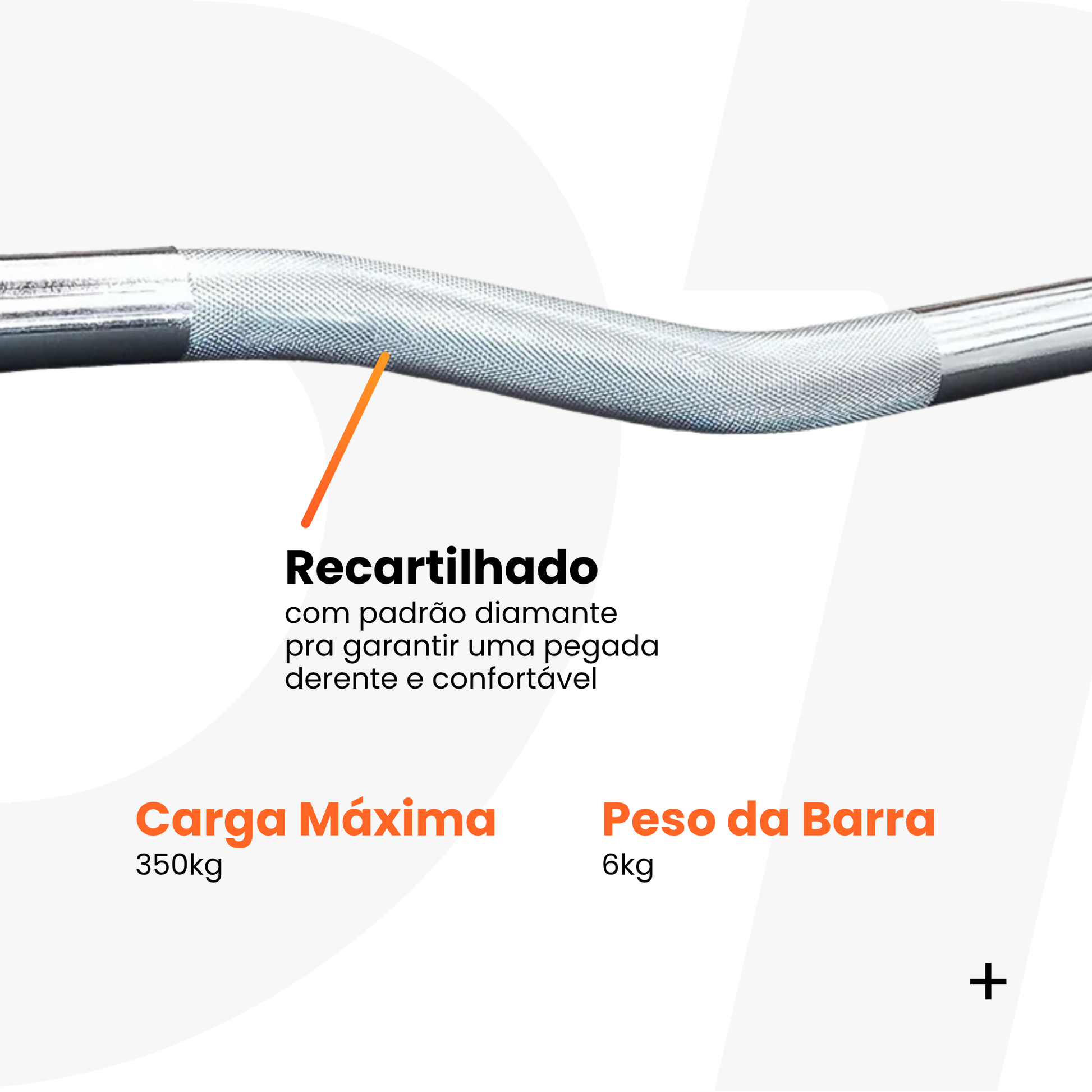 Nossa barra apresenta uma pegada recartilhada aderente e confortável, proporcionando um controle excepcional durante seus exercícios. O recartilhado estilo diamante garante uma aderência firme, reduzindo o risco de deslizamento e aumentando a eficiência do treino, permitindo que você se concentre totalmente na execução perfeita dos movimentos.