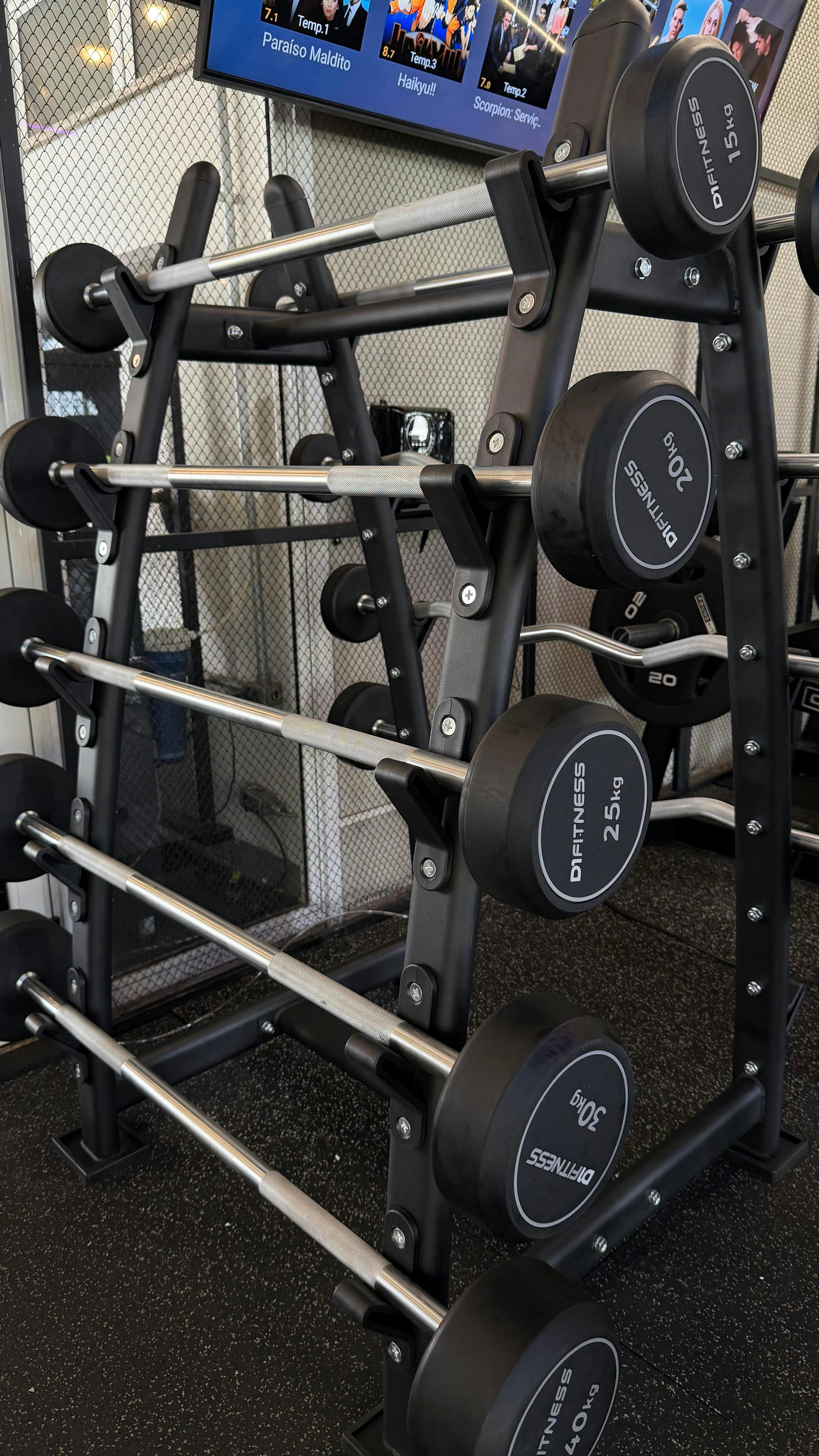 O Suporte para 10 Barras Montadas da D1 Fitness é a solução definitiva para manter seu espaço de treino organizado com elegância e praticidade. Com design robusto e acabamento de alto padrão, este suporte oferece uma organização profissional para academias e estúdios.